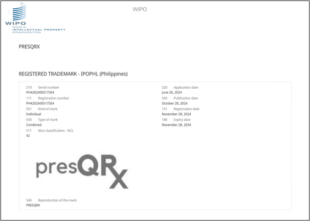Together, these IP protections affirm PRESQRX as a fully recognized and institutionally protected innovation under Philippine law.