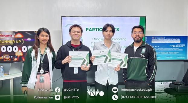 Representing CITCS were Alihakim M. Dimacaling, John Reniel D. Cruz, and Francis Carlo C. Del Campo, who showcased their knowledge of intellectual property laws and principles alongside participants from other UC colleges.